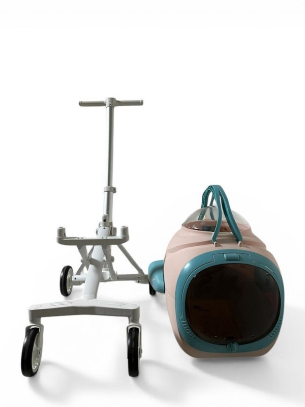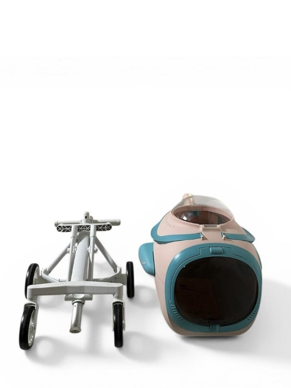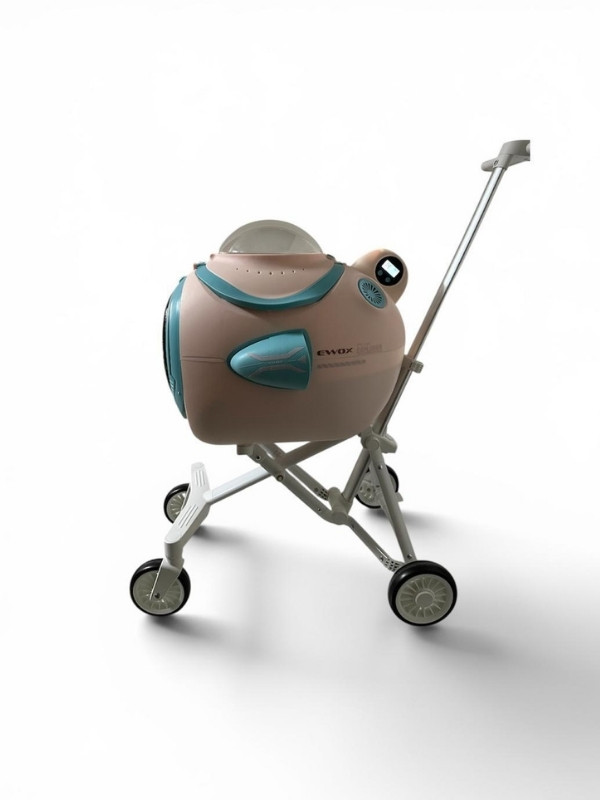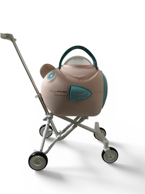 Ewox Astronot Model Fanlı Evcil Hayvan Arabası; pembe gövde üzerindeki turkuaz detayları, şeffaf üst bölmesi ve çok fonksiyonlu yapısıyla patili dostunuzla yaptığınız tüm yolculukları daha konforlu ve güvenli hale getirir. 2’si 1 arada sistem sayesinde hem oto taşıyıcı hem de rahat hareket eden bir pet arabası olarak kullanılabilir. Katlanabilir yapısı ile kullanım sonrası kolayca saklanır.