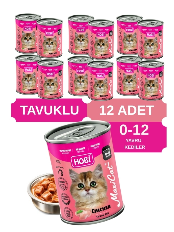 Hobi Maxicat Tavuklu Yavru Kedi Konservesi 400 Gr x 12 Adet – Vitamin Destekli, Tam ve Dengeli Mama