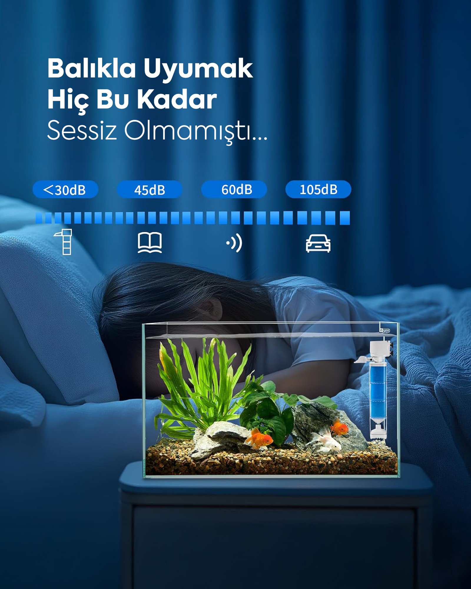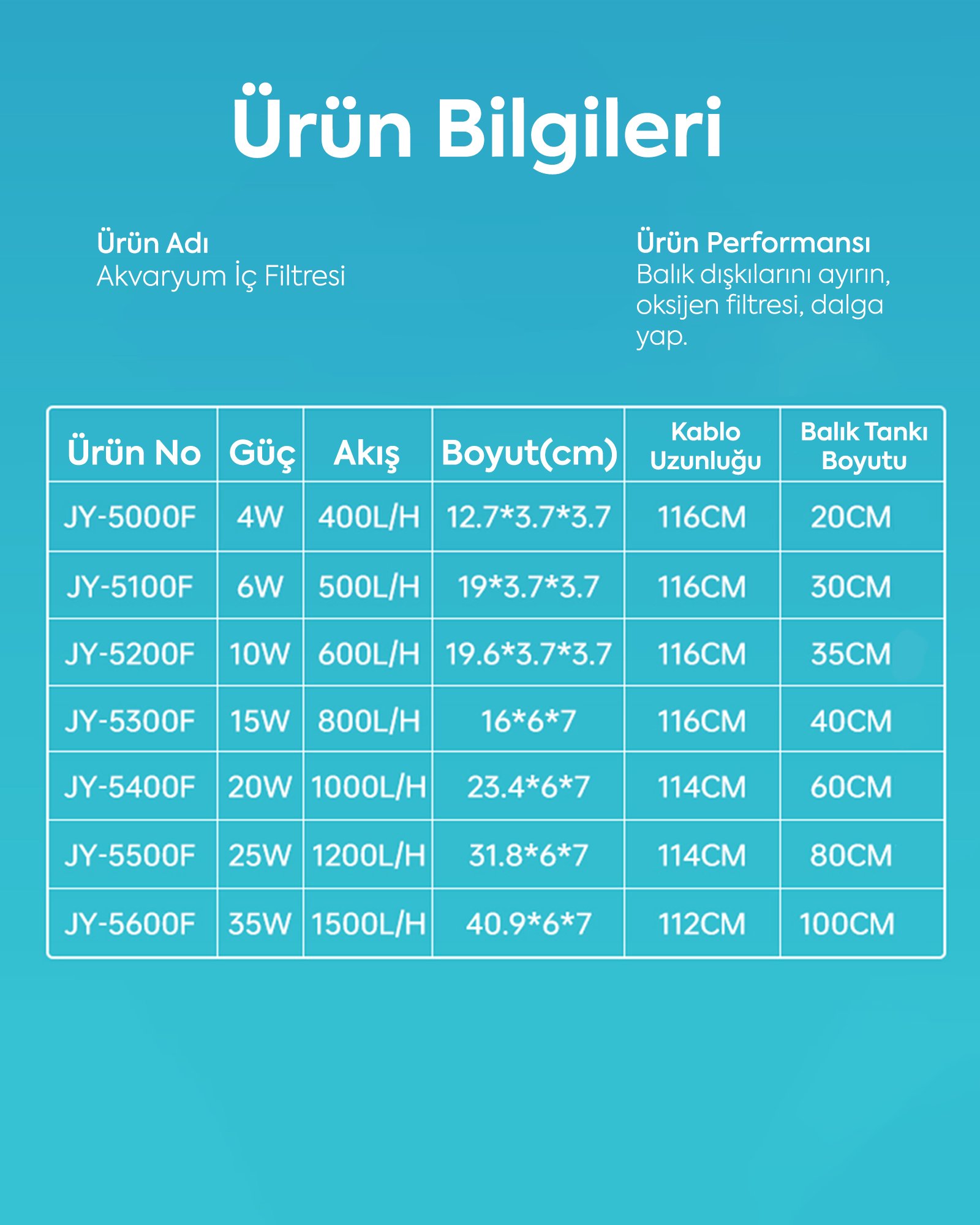Yüzey hareketi oluşturarak oksijen seviyesini artırır, balıklar için daha sağlıklı bir ortam sunar. Sessiz ve enerji tasarruflu motor teknolojisi ile ev ve ofis ortamlarında konforlu kullanım sağlar.