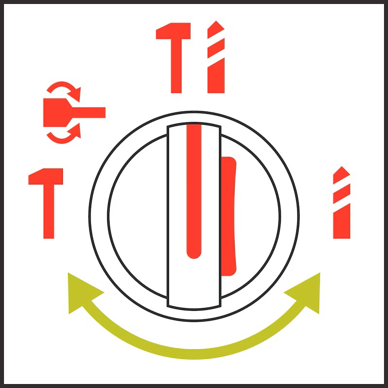 Fonksiyon seçici anahtar ile darbeli delme, darbesiz delme ve kırıcı fonksiyonları arasında kolay geçiş yapılabilir. Kırıcı uç için ek pozisyonlandırma ayarı bulunur.