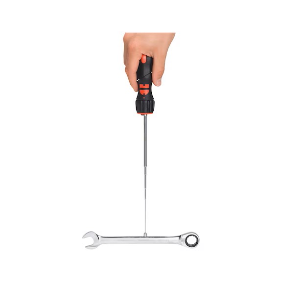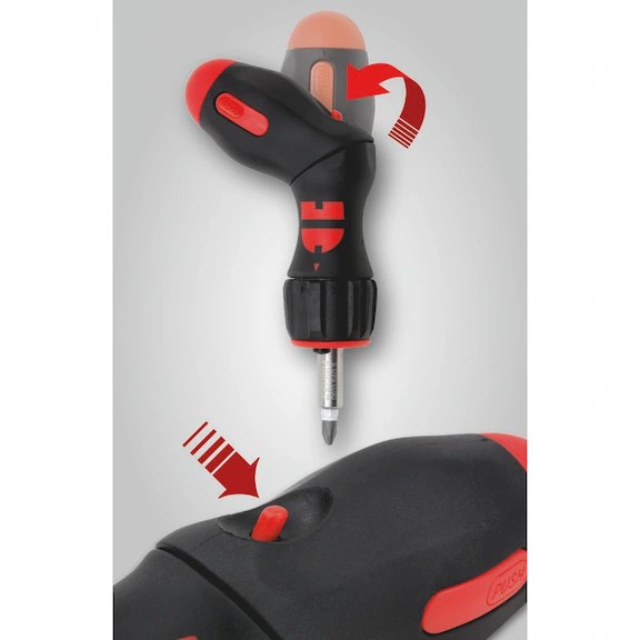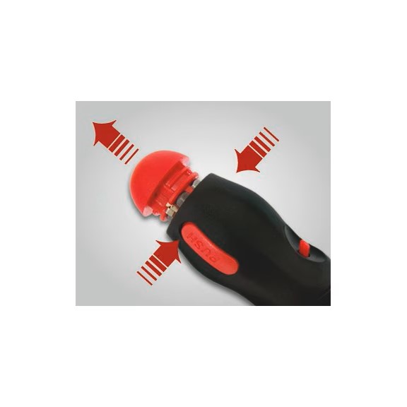 - Ayarlanabilir Tutma Sapı: Düz pozisyonda standart tornavida, 60° açılı pozisyonda kabza olarak kullanılabilir.