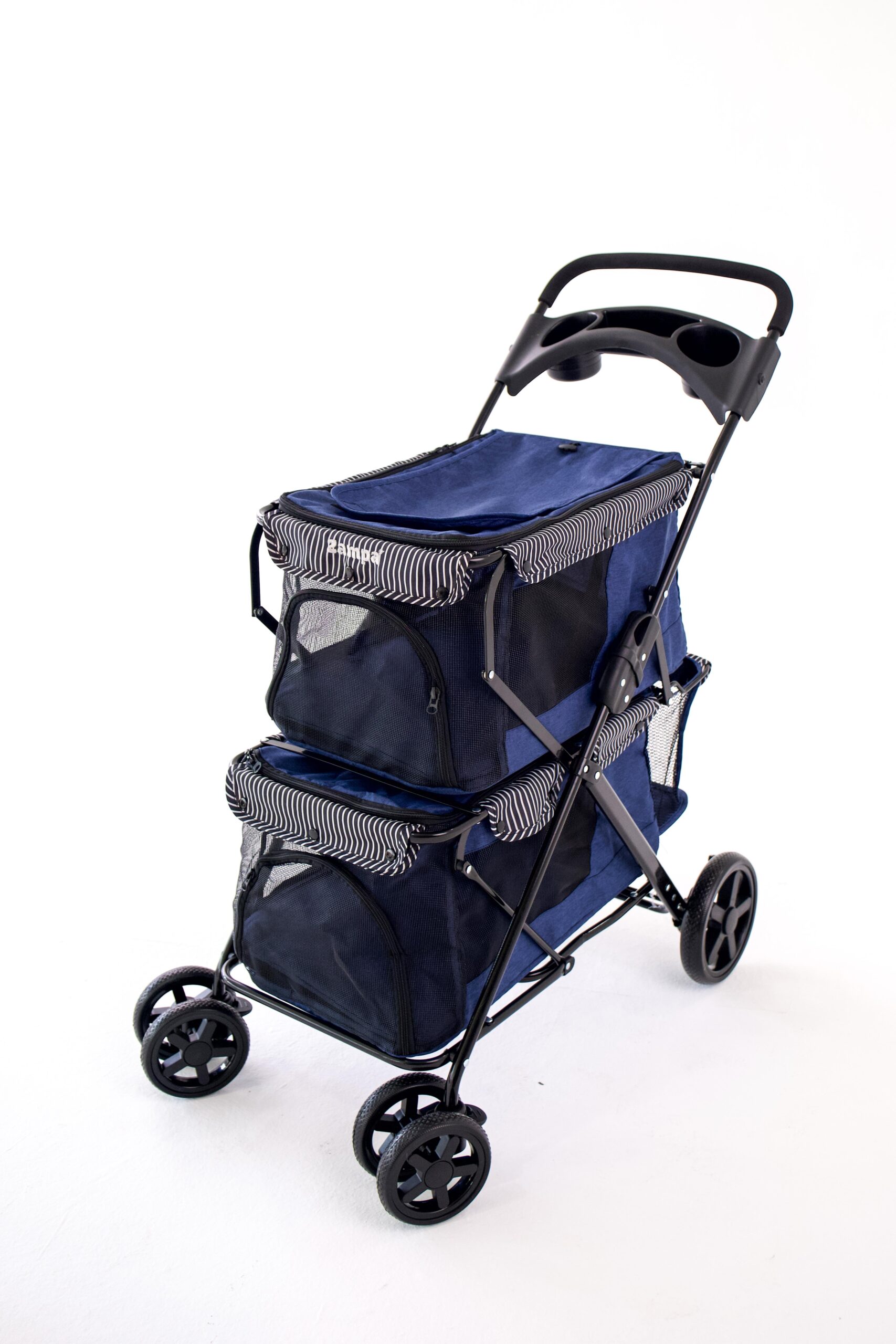 Zampa Twins Kedi-Köpek Arabası, çift bölmeli yapısı sayesinde iki evcil hayvanı aynı anda taşıma imkânı sunar. Her bölme ferah, güvenli ve rahat olacak şekilde tasarlanmıştır.