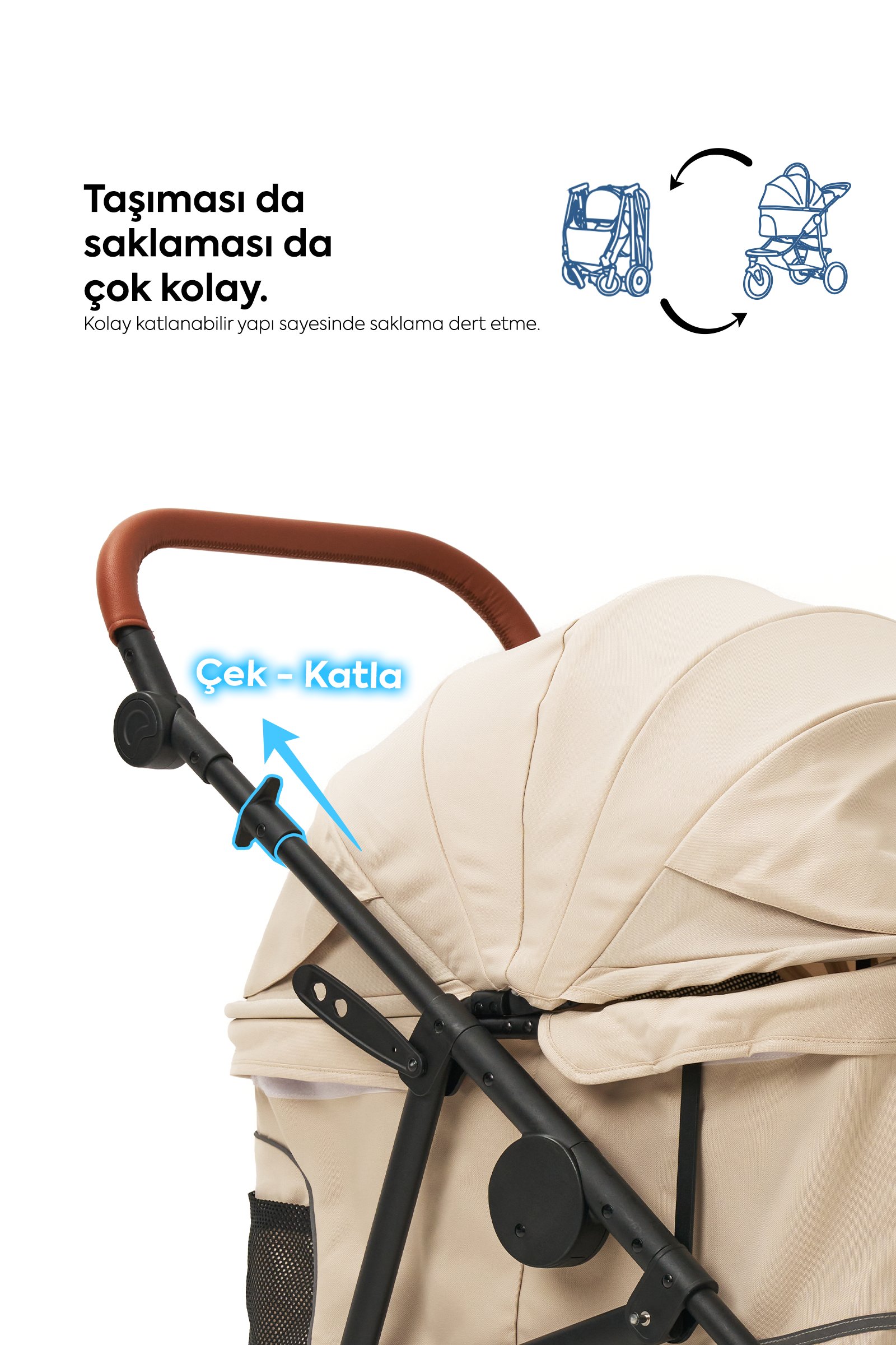 Kullanım sonrası saniyeler içinde katlanarak kompakt boyuta ulaşır. Bagajda veya evde dar alanlarda rahatça saklanabilir.